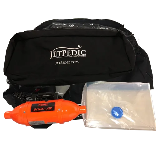 For cabins with space constraints, we offer a vacuum kit that allows you to quickly vacuum-pack the mattress down into compact form. The vacuum kit comes with a vacuum, storage bags, and custom JetPedic zipper bag.